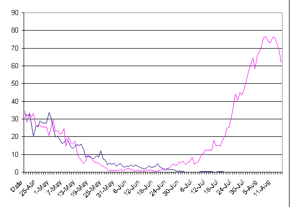 Notice how the A’s tail off right at the end (76% to 62%). That’s when the Angels were sweeping the Mariners.