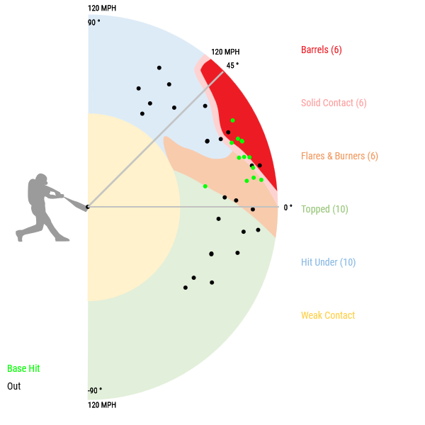 Last year, only 8% of his balls in play were “solid contact” or better. This year, he’s already got 12 such balls in play, or 32% of his balls in play. This is why Motter has 11 extra base hits on the year and only 2 singles.