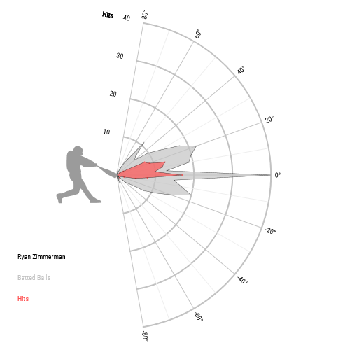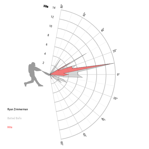 One thing that’s kind of interesting about Zimmerman is the distribution of his batted balls. Last year, his modal batted ball was right around 0, hence his nearly 50% ground ball rate. He hit a few fly balls, and hit a few chopped grounders, but the distribution looks tighter than it does for most hitters: