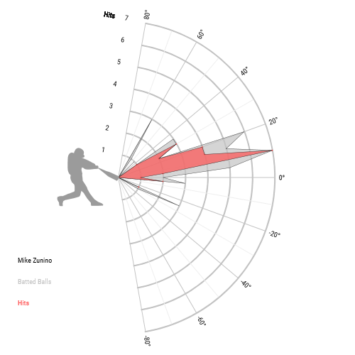It’s interesting, because the one thing Zunino is *extremely* consistent on…well, yes, ok, good point, he’s consistently a risk to strike out. But over many years, he’s had a very consistent batted ball profile, borne of a consistently high launch angle. Mike Zunino is not, and has never been a ground ball hitter. Even in his powerless stretches, he’s hitting the ball in the air. His average launch angle when he was awful in 2016: 21.9 degrees. In his superhuman stretch in the middle of 2016? 21.7 degrees. Early 2017? 19.3 degrees. Recently? 18.7. In every period, he’s amongst the leaders in baseball in this metric, and while they’ve gone down slightly, I don’t think that’s the issue. The issue is how those angles are distributed.